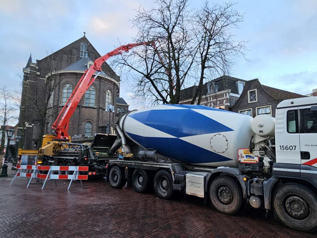 Vrijdag 16 maart 2026 – Bij de bouw van de nieuwe fietsenstalling aan de Lange Mare in Leiden is een mooie mijlpaal bereikt. Op maandag 16 februari is de betonnen verdiepingsvloer van de stalling gestort.